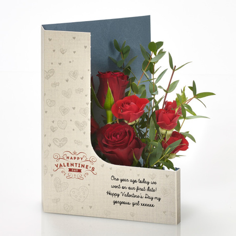 Classic red roses to say ‘I love you’ on Valentine’s Day . A hand arranged card with a message that can be personalised will let your Valentine know just how special they are.